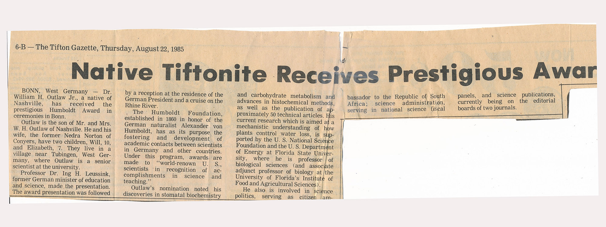 | Comments:Humboldt Award (document) Supplemental A is the program. Suppl B is press release. (N.B. Other images will be posted separately.) |